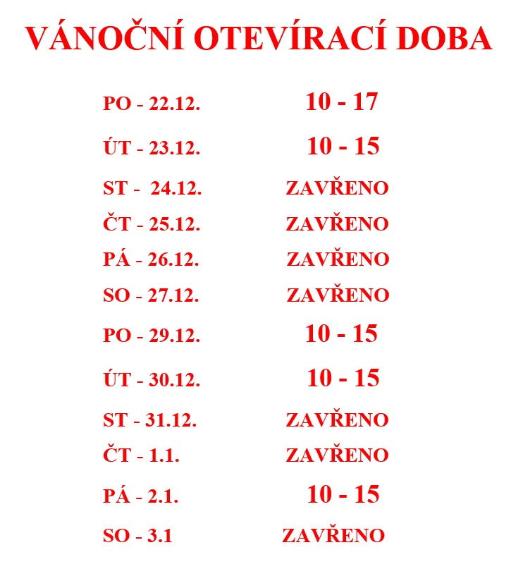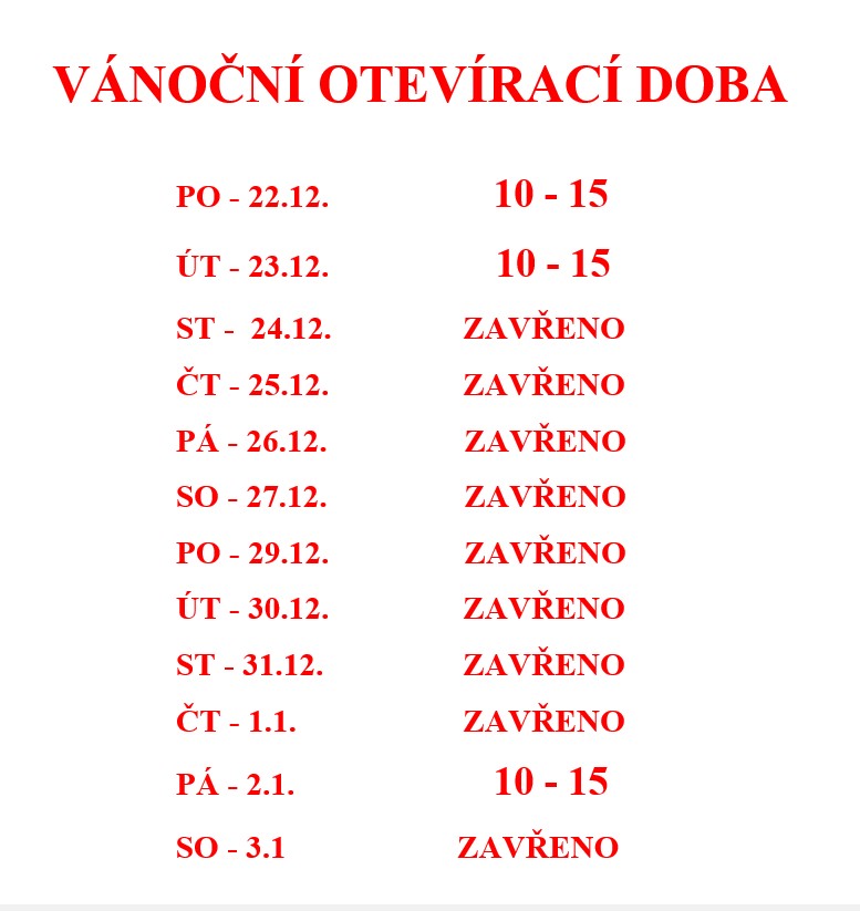 18.12.2025o sobotách otevřena pouze prodejna Smetanovy sady 6 - OTEVŘENO 10-12h